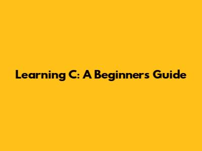 Learning C: A Beginner's Guide