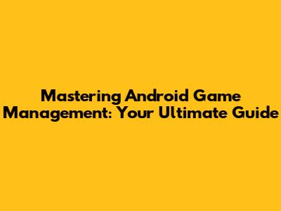 Mastering Android Game Management: Your Ultimate Guide