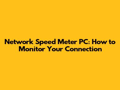 Network Speed Meter PC: How To Monitor Your Connection
