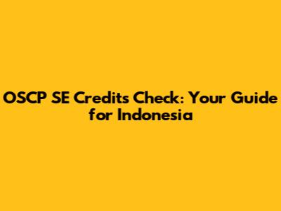 OSCP SE Credits Check: Your Guide For Indonesia