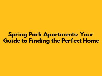 Spring Park Apartments: Your Guide To Finding The Perfect Home